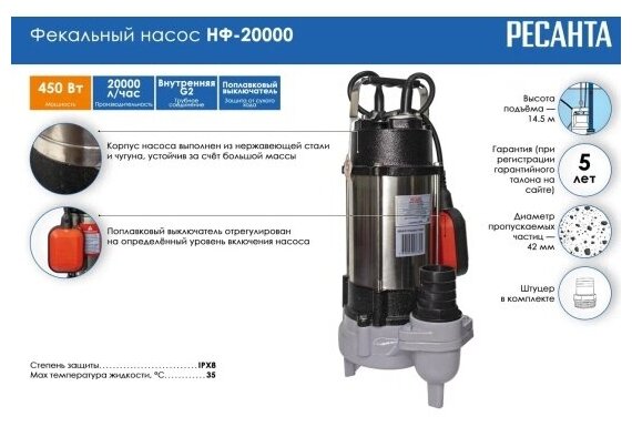 Maximum flow 20000 l/h, Electric motor type - asynchronous, single-phase with squirrel-cage rotor