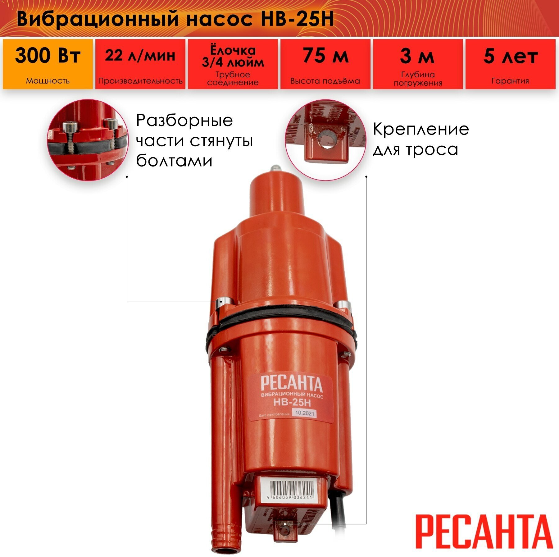 Mains frequency - 50 Hz, Maximum productivity - 1320 l/h. thermal protection