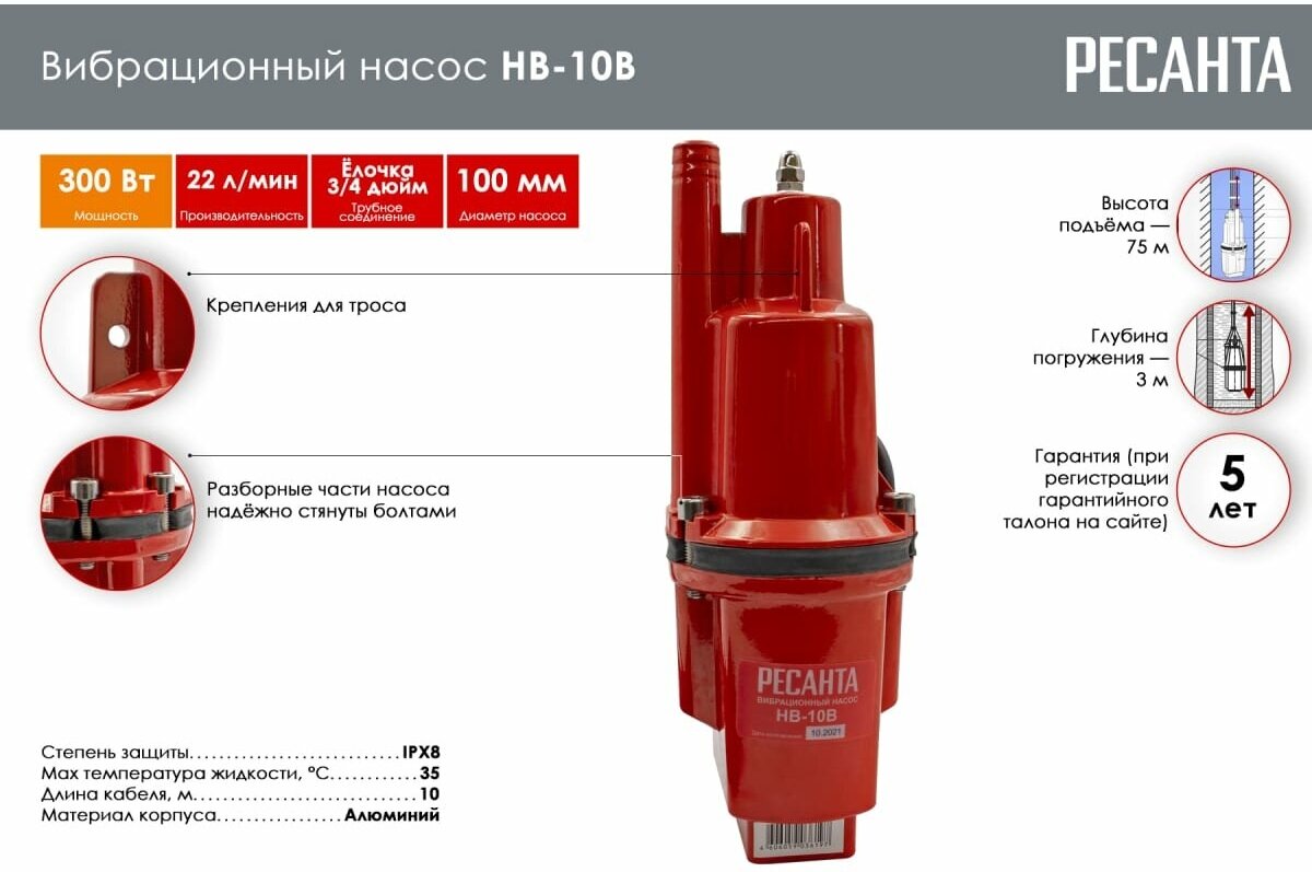 Vibration pump with power cable, Cord, Passport, Packing.