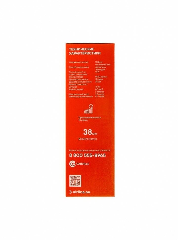 Productivity: 12 l/min; supply voltage: 12V; operation is allowed in a wide temperature range of the environment from 5 to 40 degrees; diameter 38 mm