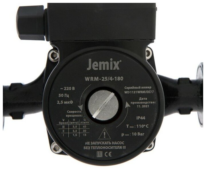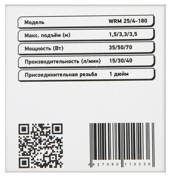 Three control speeds and three powers, respectively: 35 W, 50 W, 70 W, maximum performance at these powers: 15 l / min., 30 l / min., 40 l / min., maximum head: 1.5 m, 3 .3 m, 3.5 m; protection class IP44; electric cable is not