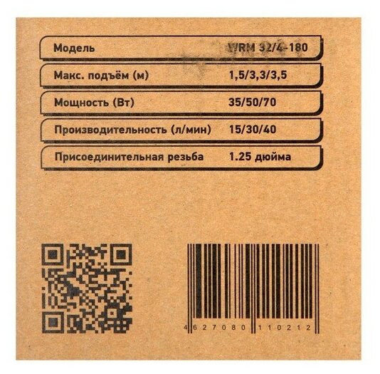 Three speed regulation; power 70/50/35 W; productivity - up to 40/30/15 l/min; maximum lift - up to 3.5 / 3.3 / 1.5 m