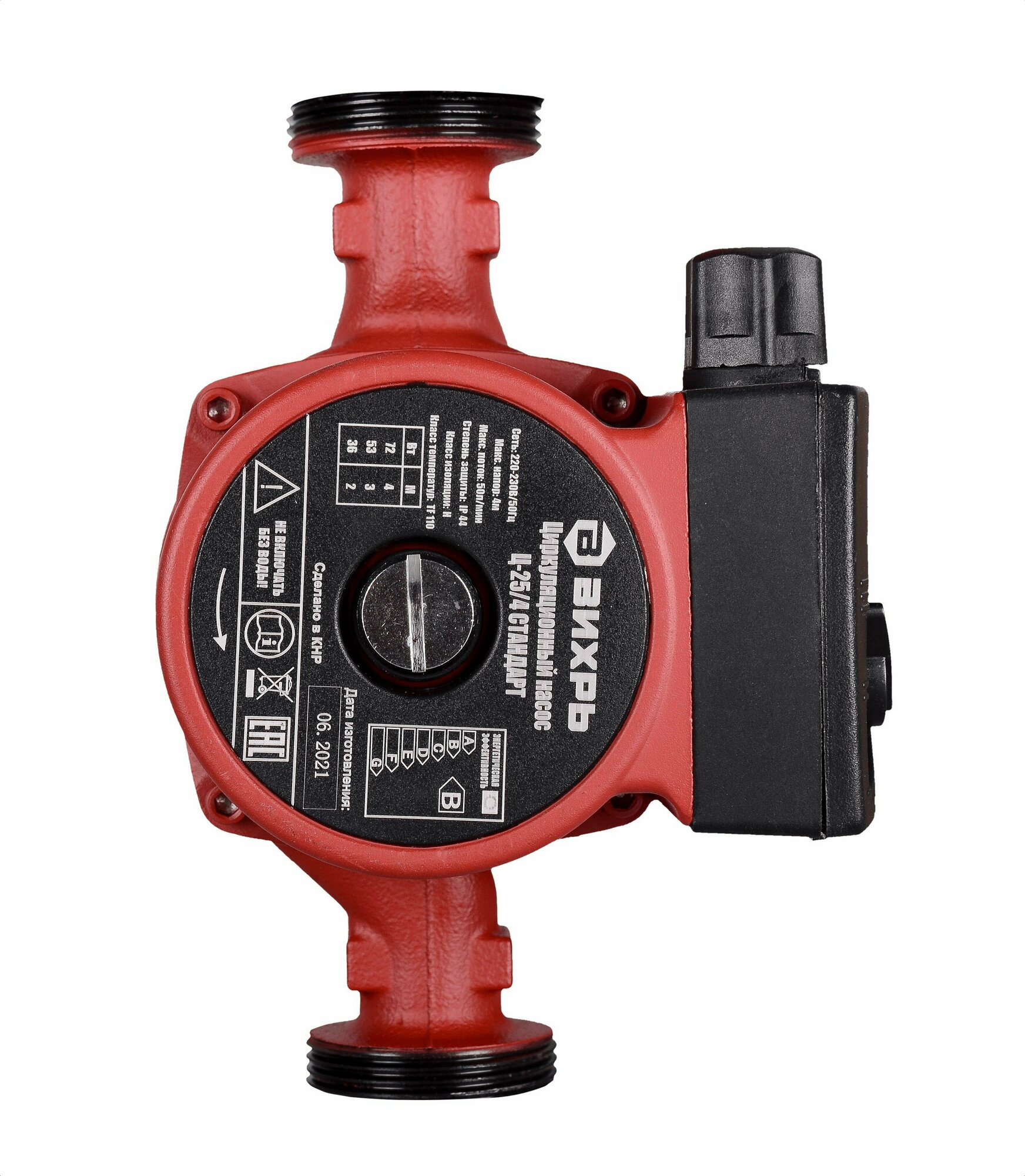 Rotor type: "wet"; power: 36/53/72 W; pump cover material: cast iron; temperature class: TF 110; insulation class: H, degree of protection: IP44; thread size on the pump, inch 1 1/2, size of the connecting nut-adapter, inch 1