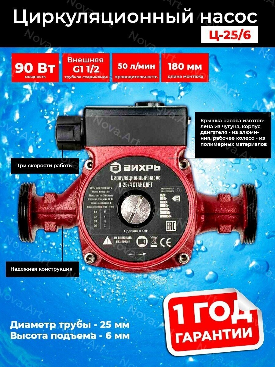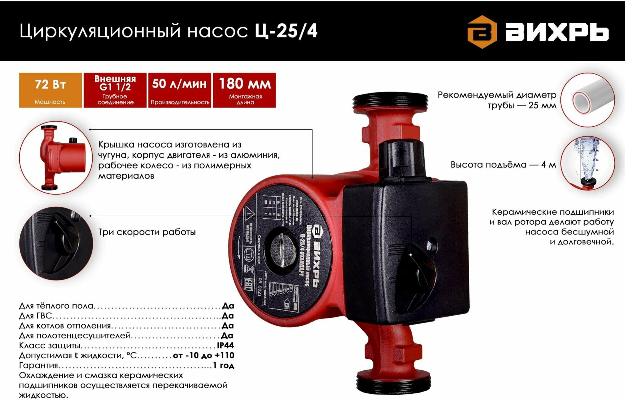 Detailed equipment: Circulation pump: 1 pc, swivel with union nut: 2 pcs, rubber gaskets: 2 pcs, passport: 1 pc, packaging: 1 pc