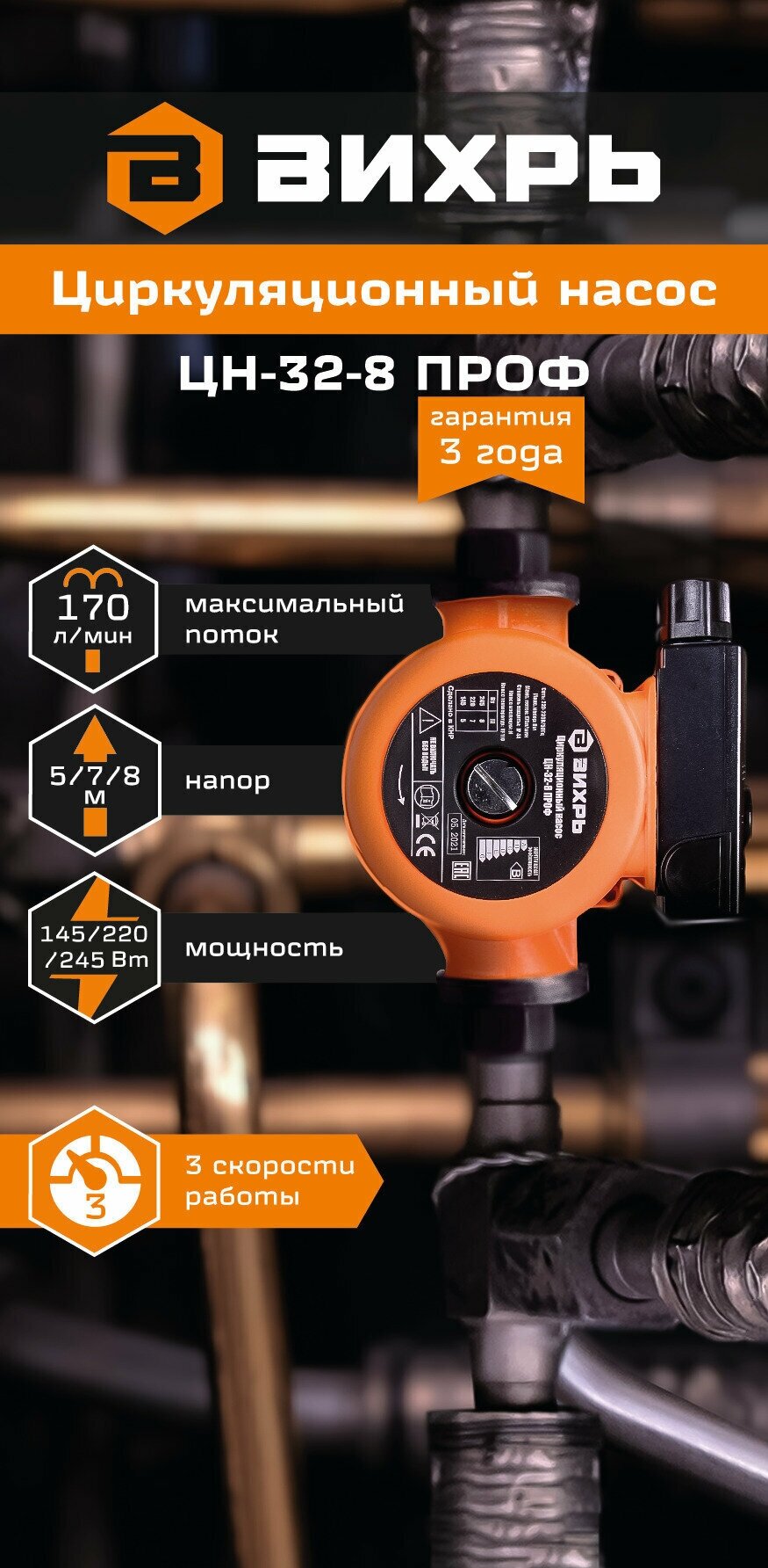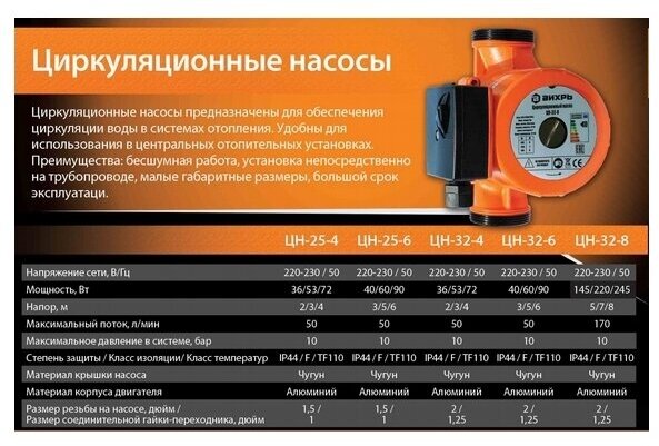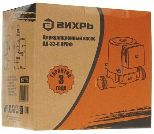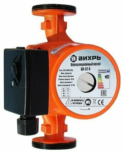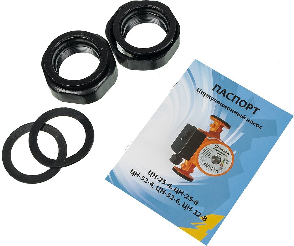 Detailed equipment: Circulation pump - 1 pc, swivel with a cap nut - 2 pcs, rubber gaskets - 2 pcs, passport - 1 pc, packaging - 1 pc