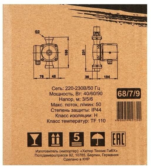 Detailed equipment: Circulation pump: 1 pc, swivel with union nut: 2 pcs, rubber gaskets: 2 pcs, passport: 1 pc, packaging: 1 pc