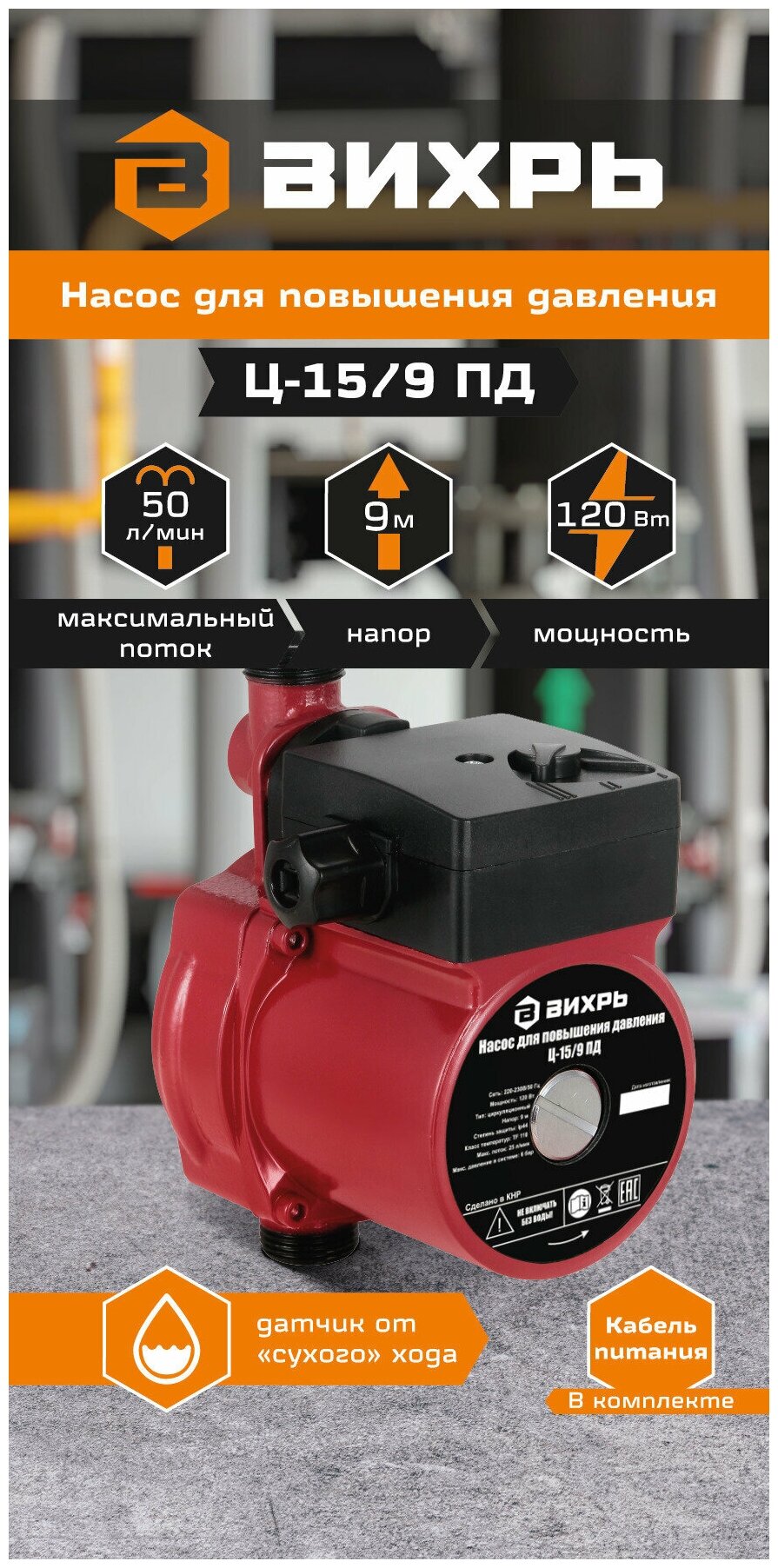 Detailed equipment: Circulation pump - 1 pc. Squeegee with union nut - 2 pcs. Rubber gaskets - 2 pcs. Passport - 1 pc. Packing - 1 piece