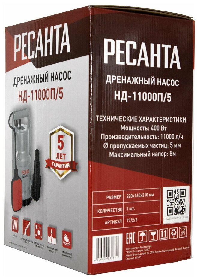 Detailed equipment: Drainage pump, plastic fitting, passport, packaging