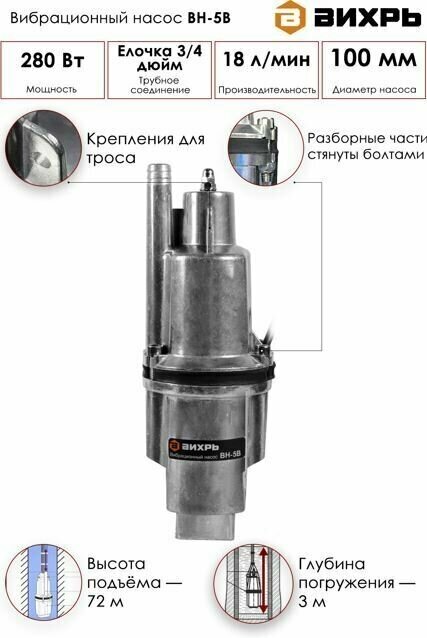 Additional Information: Upper water intake; pump diameter 100 mm; minimum well diameter 110 mm; degree of protection IPX8