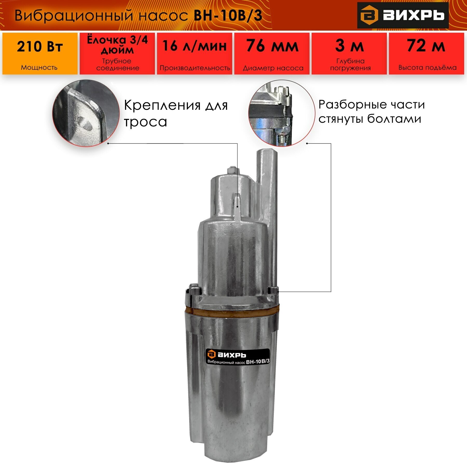 Upper water intake; degree of protection: IPX8; minimum borehole diameter 80 mm; maximum output 16 l/min