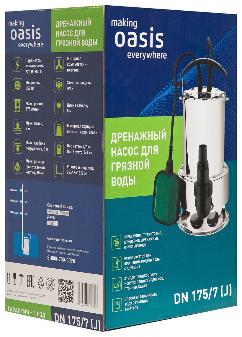 Drainage pump assembly - 1 pc; Branch pipe 90° - 1 piece; Instruction manual - 1 pc; Packing container - 1 pc.
