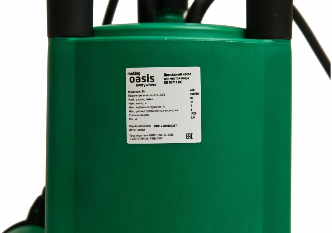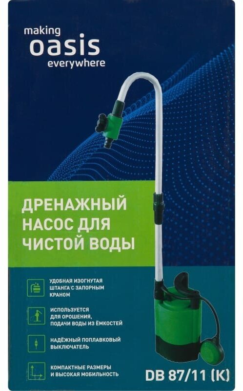 Drainage pump assembly - 1 pc; Curved rod - 1 pc; Stopcock with fitting - 1 pc; Instruction manual - 1 pc; Packing container - 1 pc.