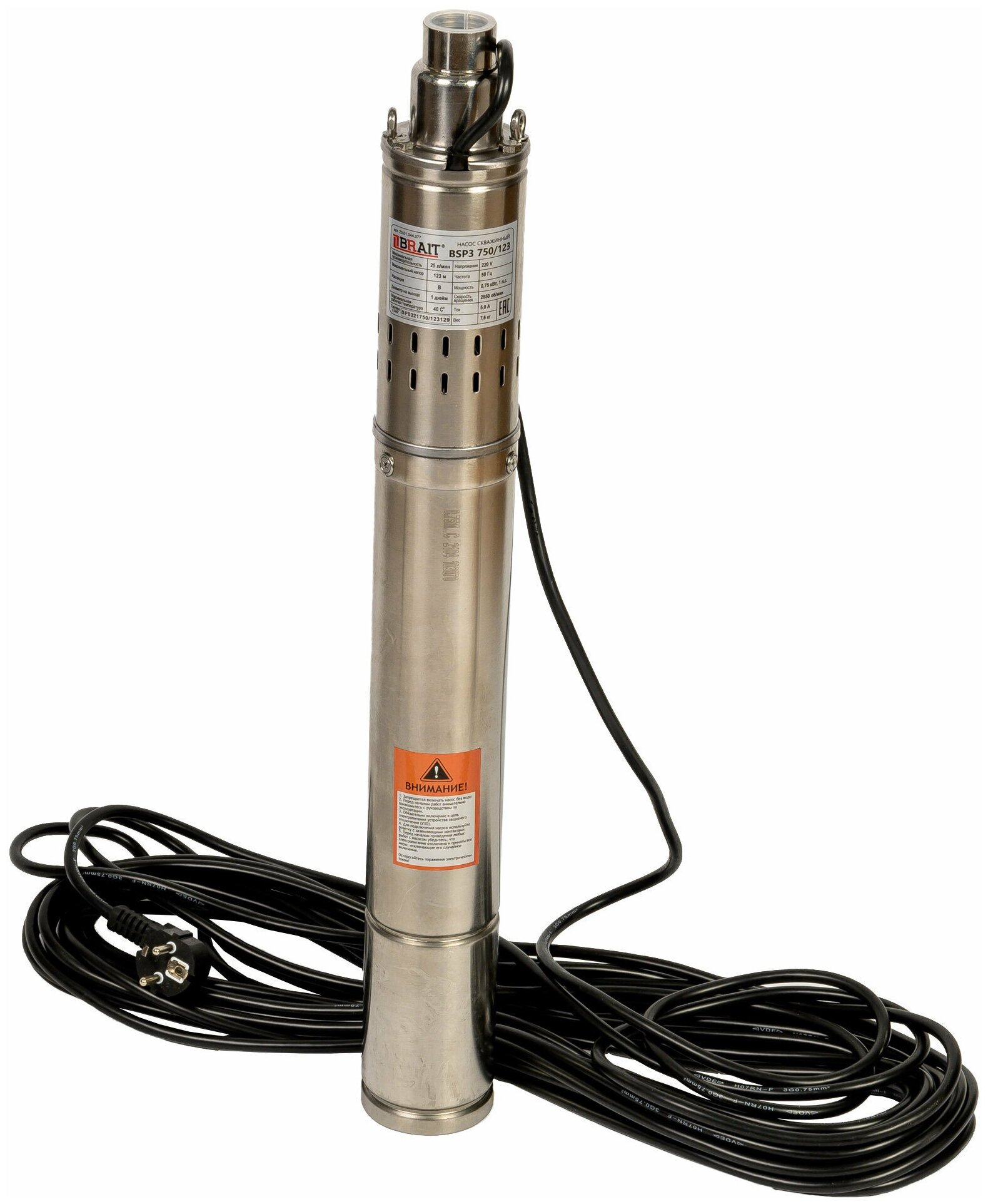 Borehole pump BRAIT BSP3 750/123 750W, 2850l/h, max. head 123m, cable 20m