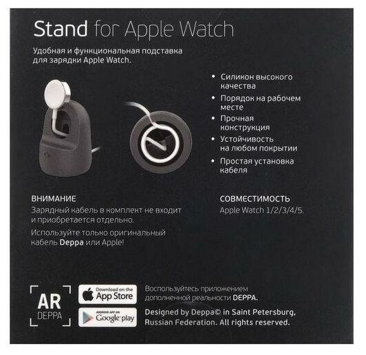 Deppa Easy Life charging stand for Apple Watch 1/2/3/4, silicone, gray