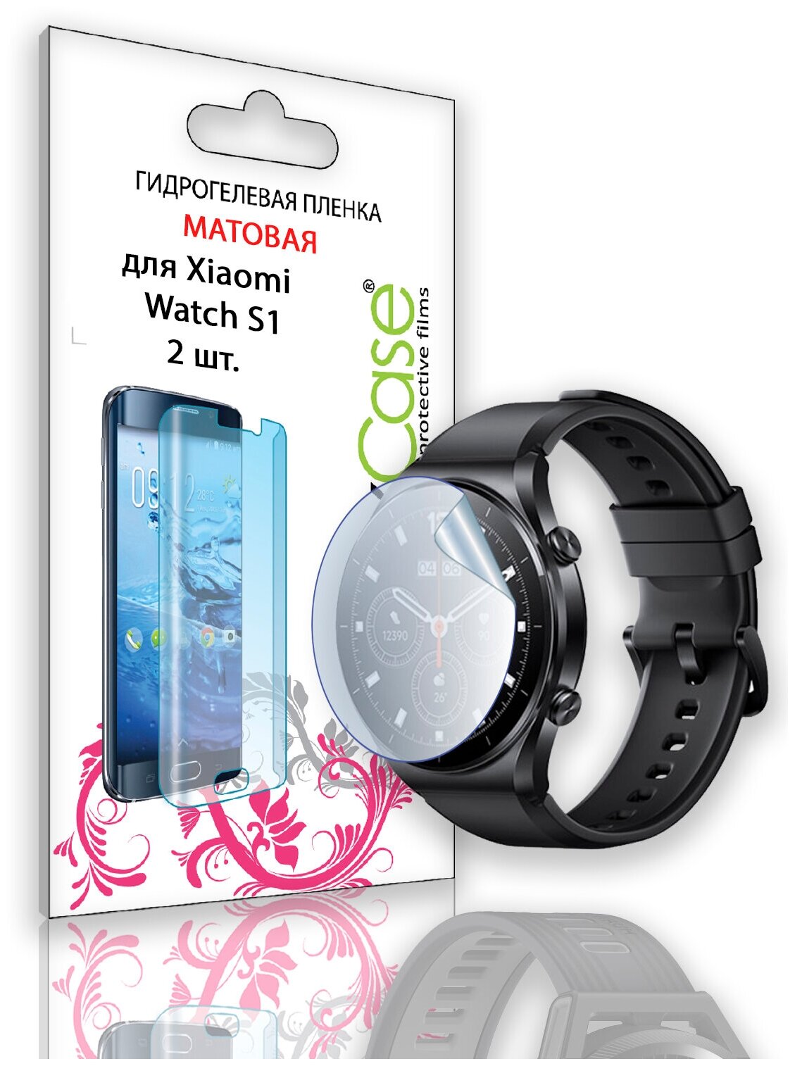 Protective hydrogel film LuxCase Xiaomi Watch S1, set of 2 pcs Matte