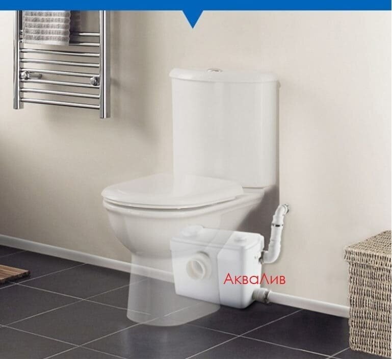 1 sewer pumping unit - 1 pc. 2 plastic plugs, for the inlet pipes, including for the toilet bowl - 3 pcs. 3 rubber couplings/adapters for connecting the station nozzles - 3 pcs. 4 stainless steel clamps - 3 pcs. 5