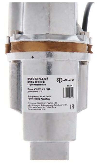 Vibrating AQUALINK VP U-65/18-16, 280 W, lower intake, 18 l/min, head 65 m, 16 m. Packing unit: 1