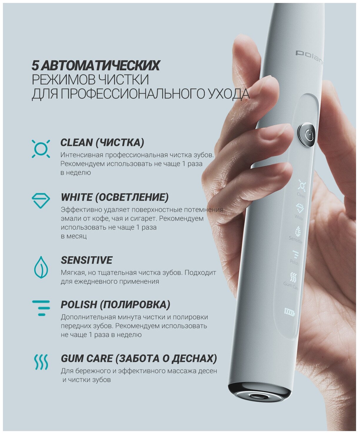 Daily cleaning, whitening, polishing, gum care, cleaning