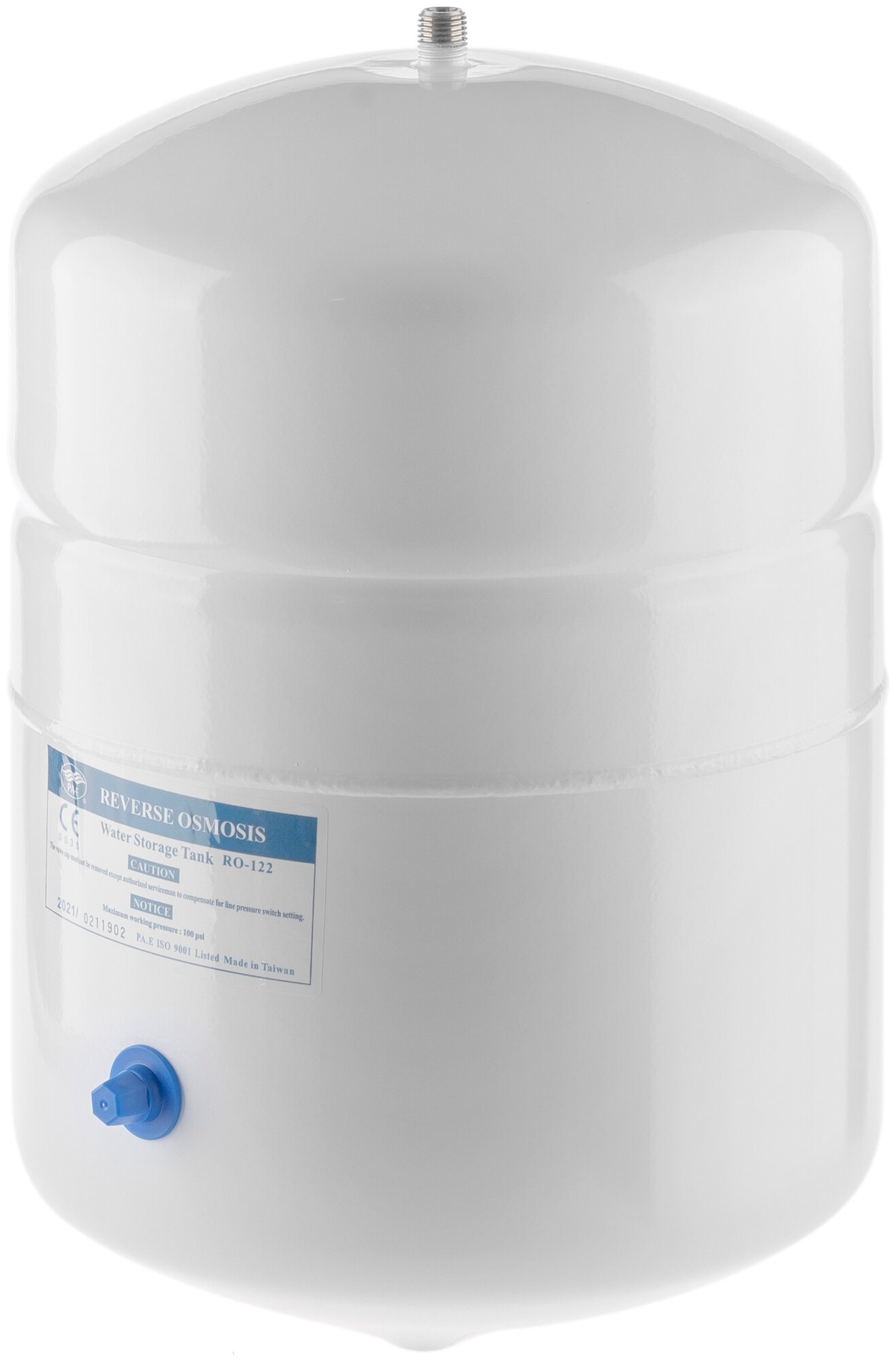Connecting size 1/4"; total volume 12 l, usable volume 7-8 l, storage tank valve included