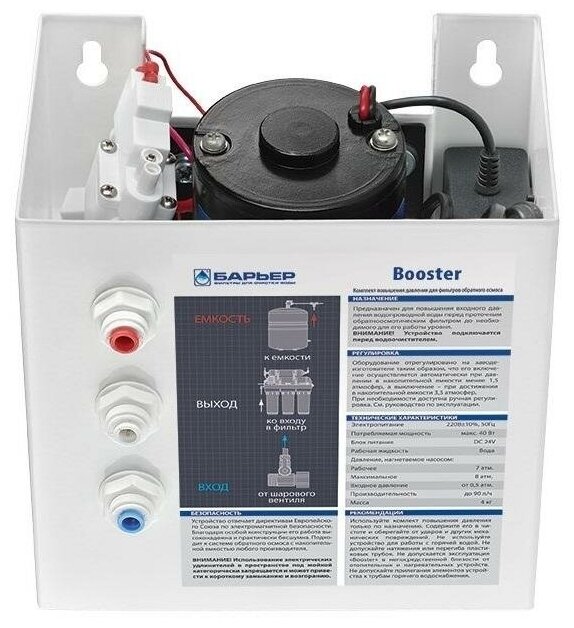 For cold water; for reverse osmosis systems with membranes from 50 to 150 gal; power consumption max. 40W; power supply 220V±10%, 50Hz; packaging dimensions: 200x190x150 mm
