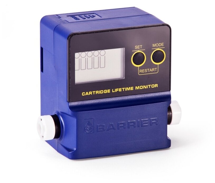 Suitable for flow filters of any manufacturer; power supply 3V 2 AAA batteries; notification of the end of the resource sound, light, display; packaging dimensions: 70x50x80 mm