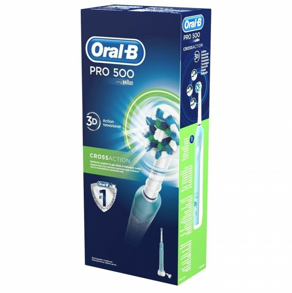 Detailed equipment: Oral-B Pro 500 CrossAction toothbrush, charger, 1x Cross Action brush head, user manual, warranty card