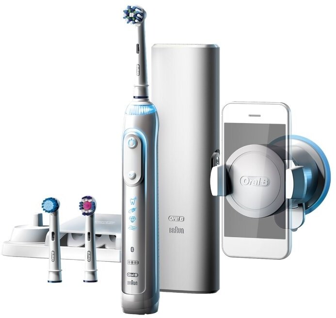 Induction charger, rubberized handle, brush connection via Bluetooth interface with the mobile application Oral-B App, brushing zone detection sensor, 12 backlight colors;