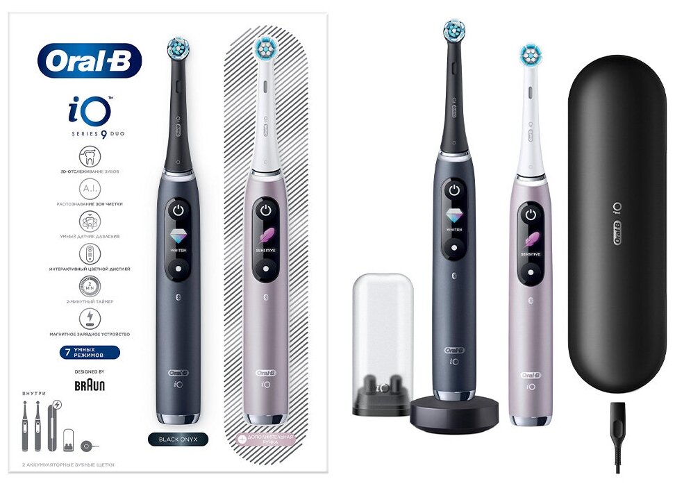 Toothbrush 2 pcs., nozzle 2 pcs. Ultimate Clean Black, Gentle Care, Magnetic Charging Stand, Nozzle Stand, Charger, Charging Travel Case