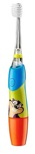 Purpose: for children, type of brush: sonic, powered by batteries, operating modes: daily cleaning, massage, attachments: soft, number of attachments in the set: 3, additional functions: suitable for children, timer