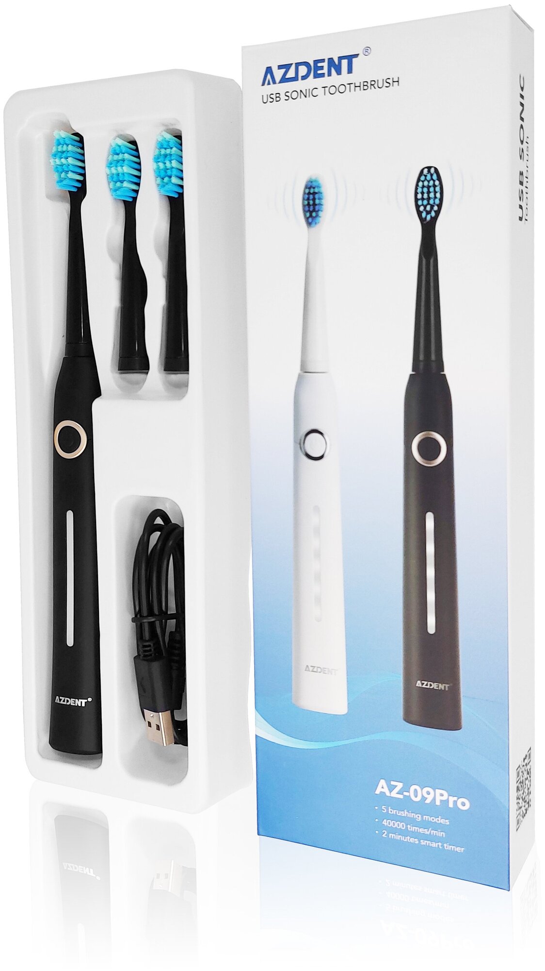 Toothbrush body - 1 pc.; replaceable nozzles - 3 pieces; USB charging cable - 1 pc.; instruction