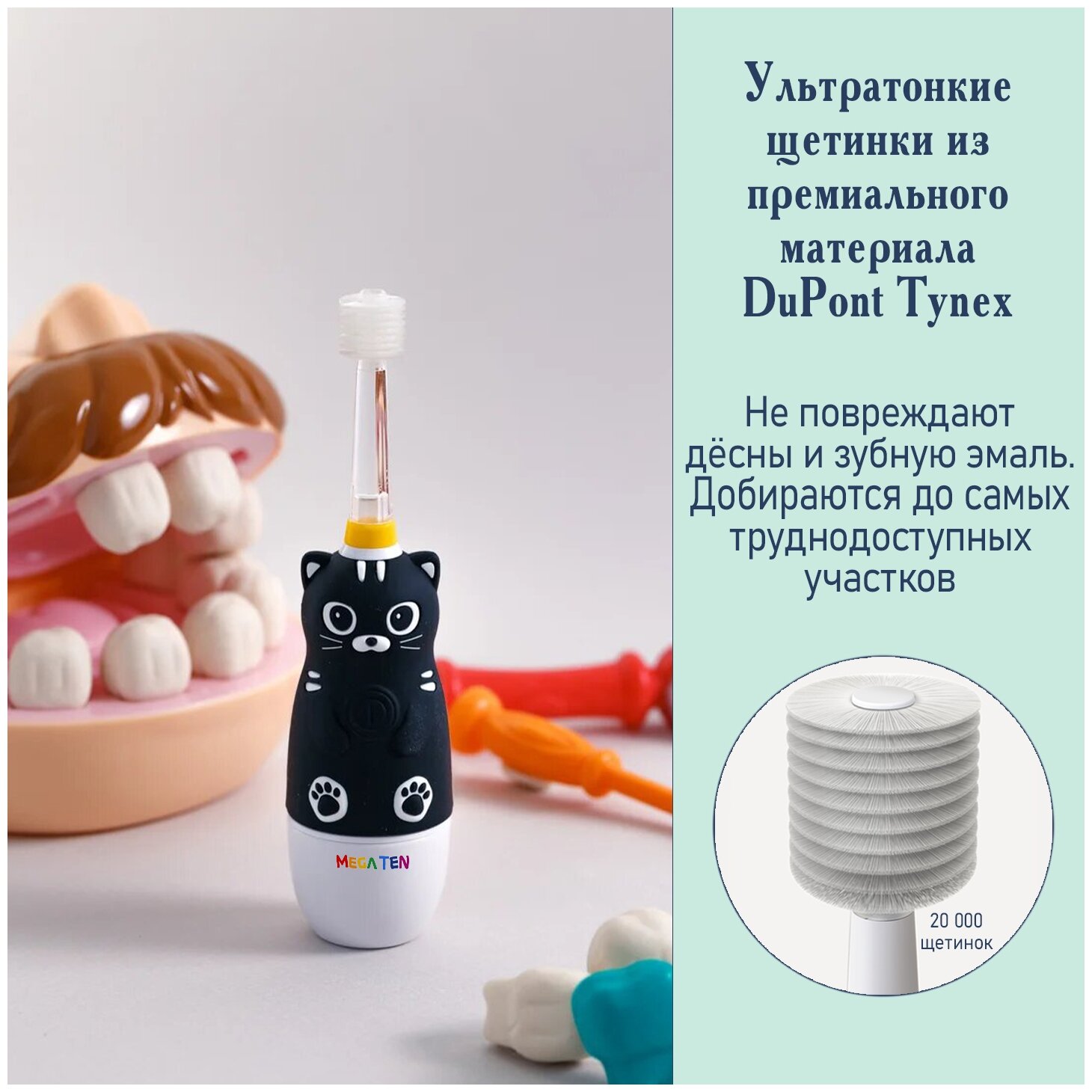 Description: Purpose: for children, type of brush: sonic, powered by batteries, operating modes: daily cleaning, attachments: soft, number of attachments in the kit: 1, additional functions: brushing timer, number of pulsations: 1