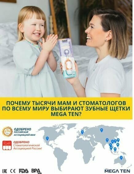 Cylindrical head 360°; 20,000 ultra-fine DuPont Tynex bristles; 2 minute timer; work from 1 AAA battery; waterproof standard IPX7; LED backlight; there is a manufacturer's warranty