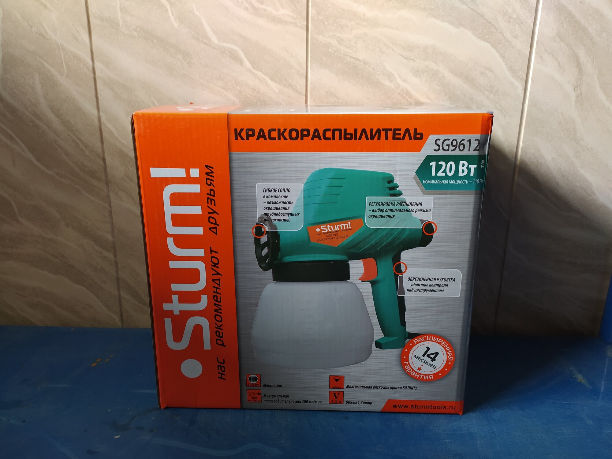 Description: Power type: mains, principle of operation: airless, power: 120 W, mains voltage: 220 V, tank volume: 1 l, tank location: bottom, maximum material viscosity: 80 dyn⋅sec/cm², viscometer, garage painting