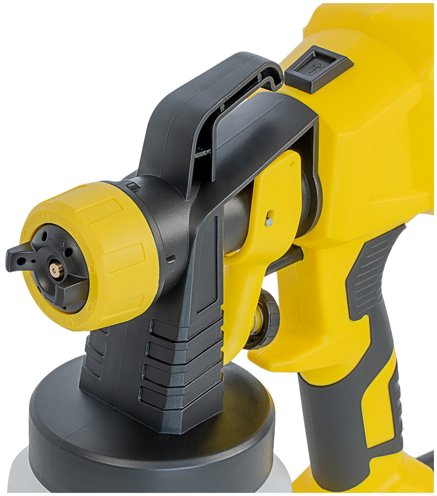 Description: Power type: mains, principle of operation: air, spraying method: HVLP, power: 500 W, maximum output spraying power: 500 W, current frequency: 50 Hz, mains voltage: 230 V, tank volume: 0.80 l, tank location