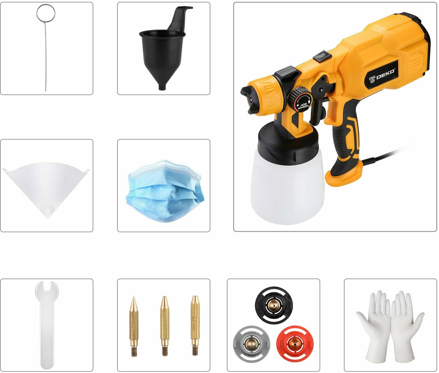 1 pc nozzle cleaning needle 1 pc viscosity measuring glass 5 pc paint filter 1 pc wrench 3 pc tip 3 pc nozzle - 1, 1.8, 2.5 mm one nozzle is already installed on the spray gun