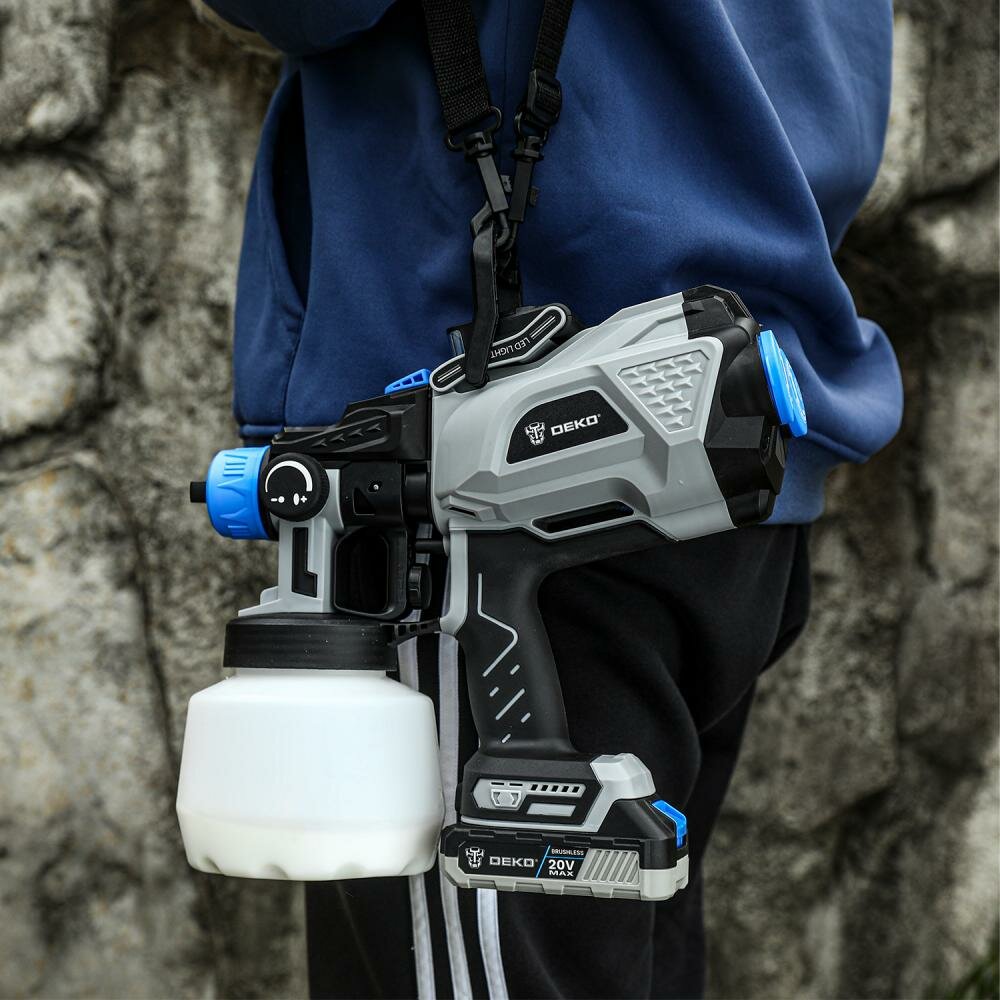 Power type: rechargeable, principle of operation: air, spraying method: HVLP, power: 140 W, battery, battery type: Li-ion, battery capacity: 2 Ah, battery voltage: 20 V, tank volume: 1.20 l, location b