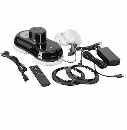 Type: robot, purpose: mirrors, tiles, windows, power type: rechargeable, equipment: charger, washing cloth, remote control, safety cord, power cord extension, locking ring, features: automatic