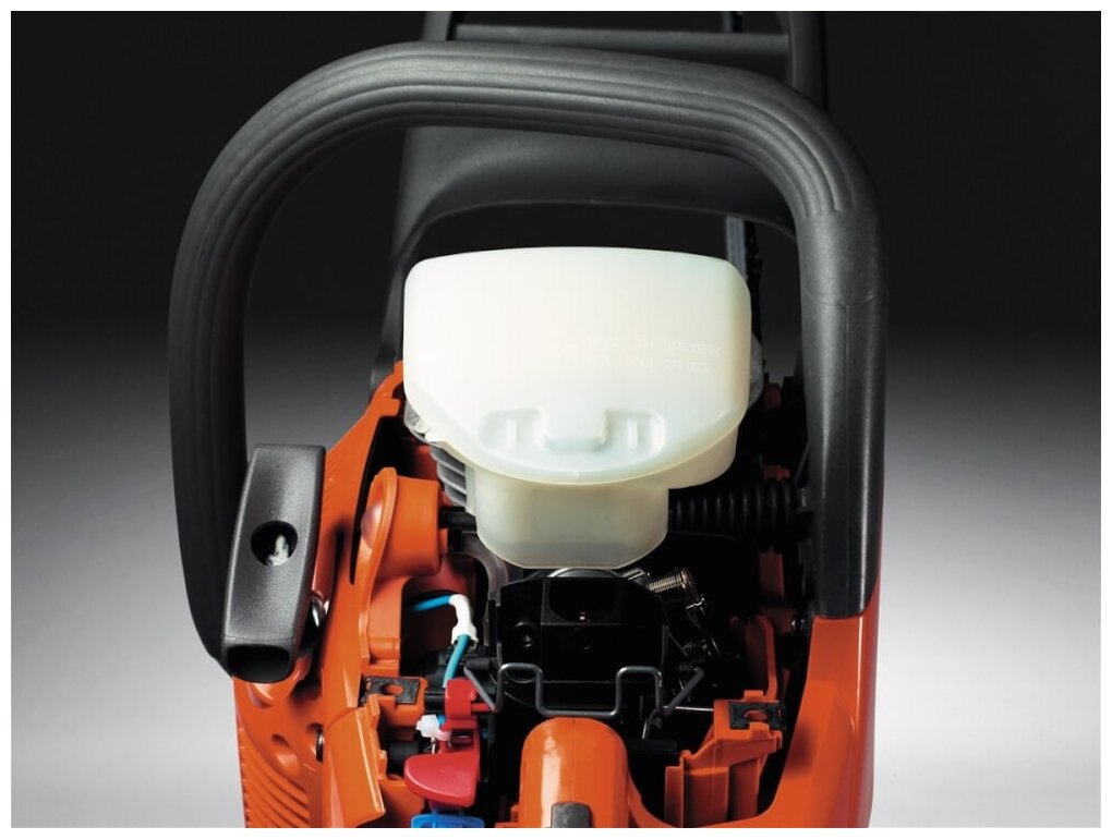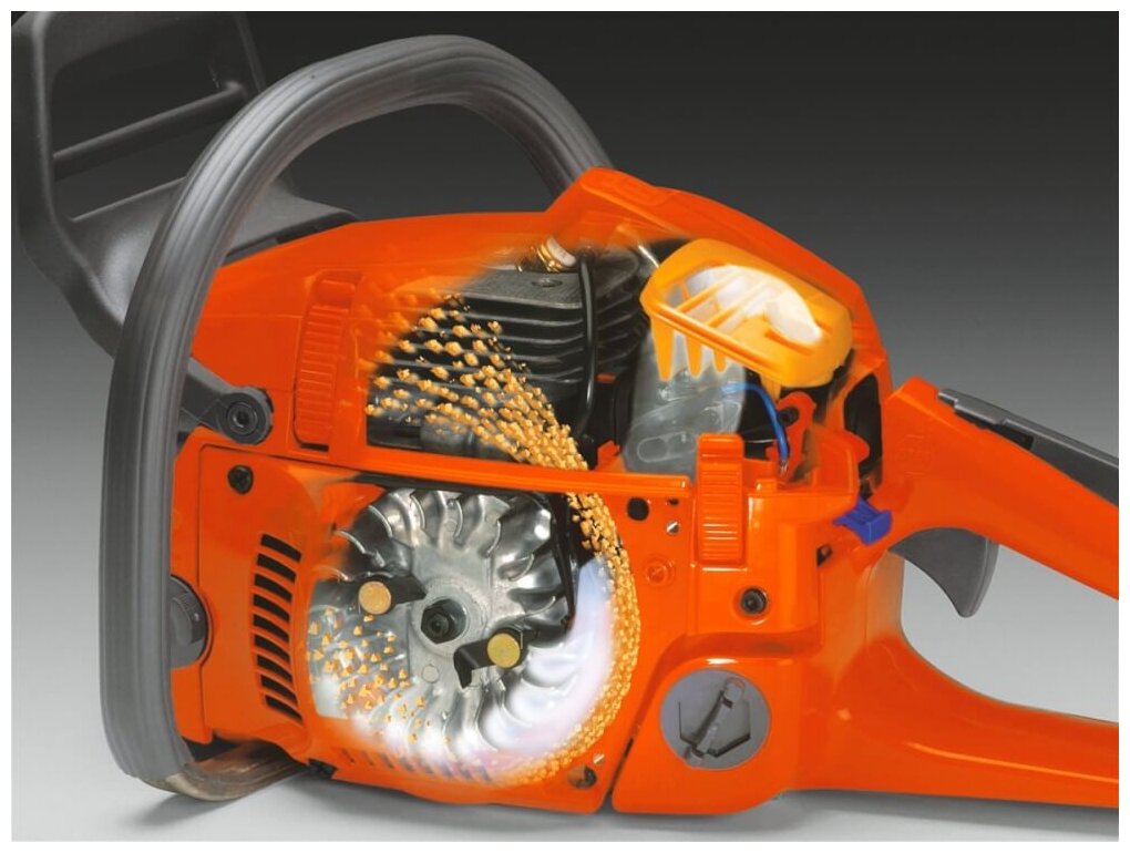 Anti-vibration, chain brake, toolless chain tension adjustment