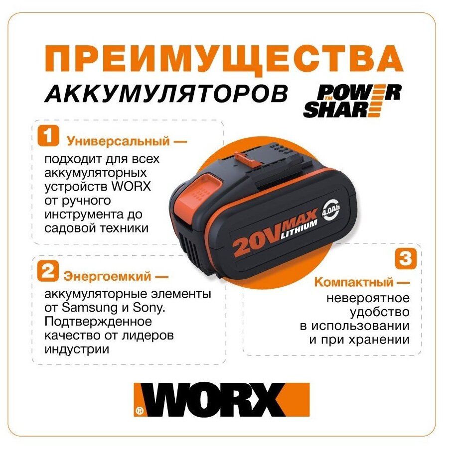 Battery Worx WG384E 2.0Ah x2 40V/2Ah