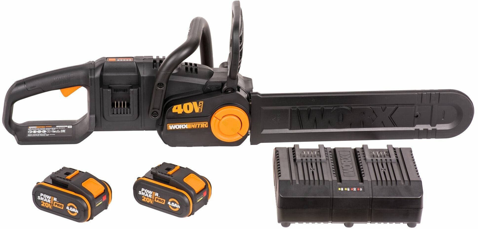 Chain battery WORX NITRO 40V 40cm brushless, 4.0Ah x2, charger 2Ax2, box