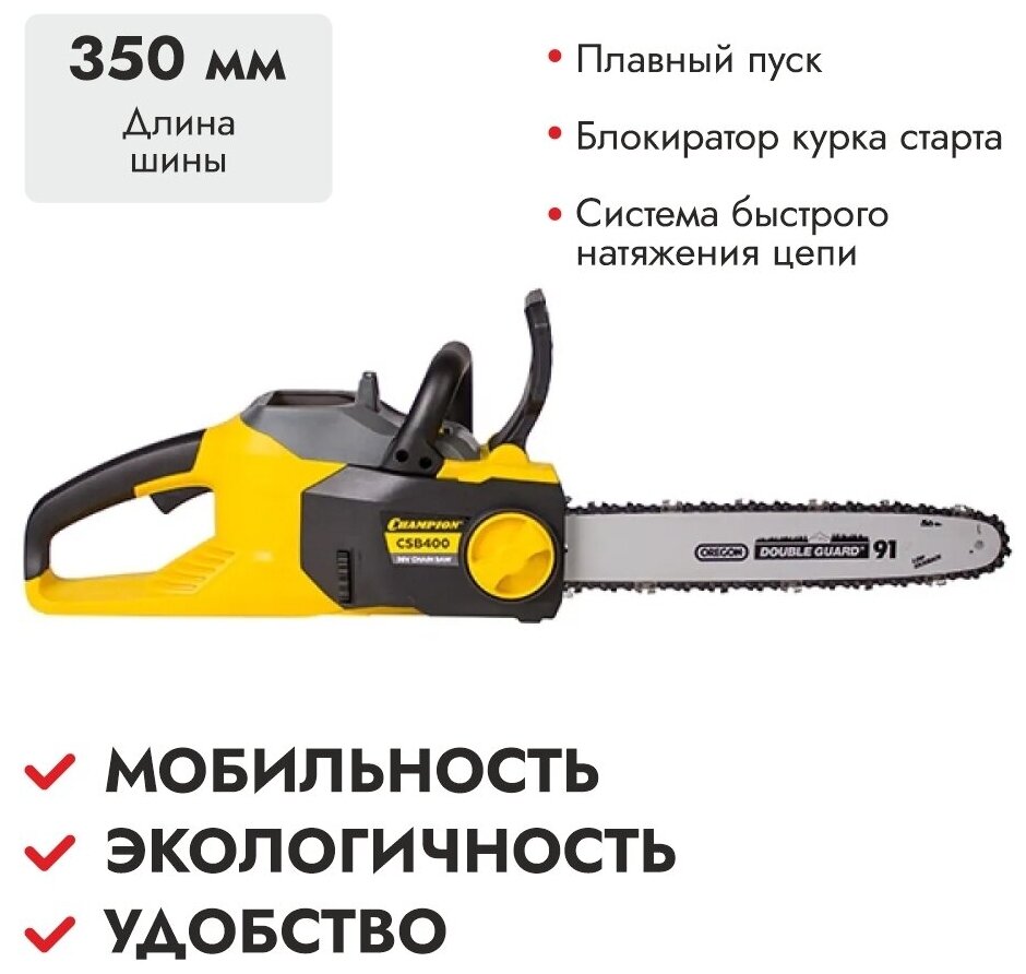 Number of links pcs 52; groove width, mm: 1.3, compatible with 2.5 and 4 Ah batteries, battery charging time: 85\130 minutes, continuous operation time 14 minutes with a fully charged 4 Ah battery