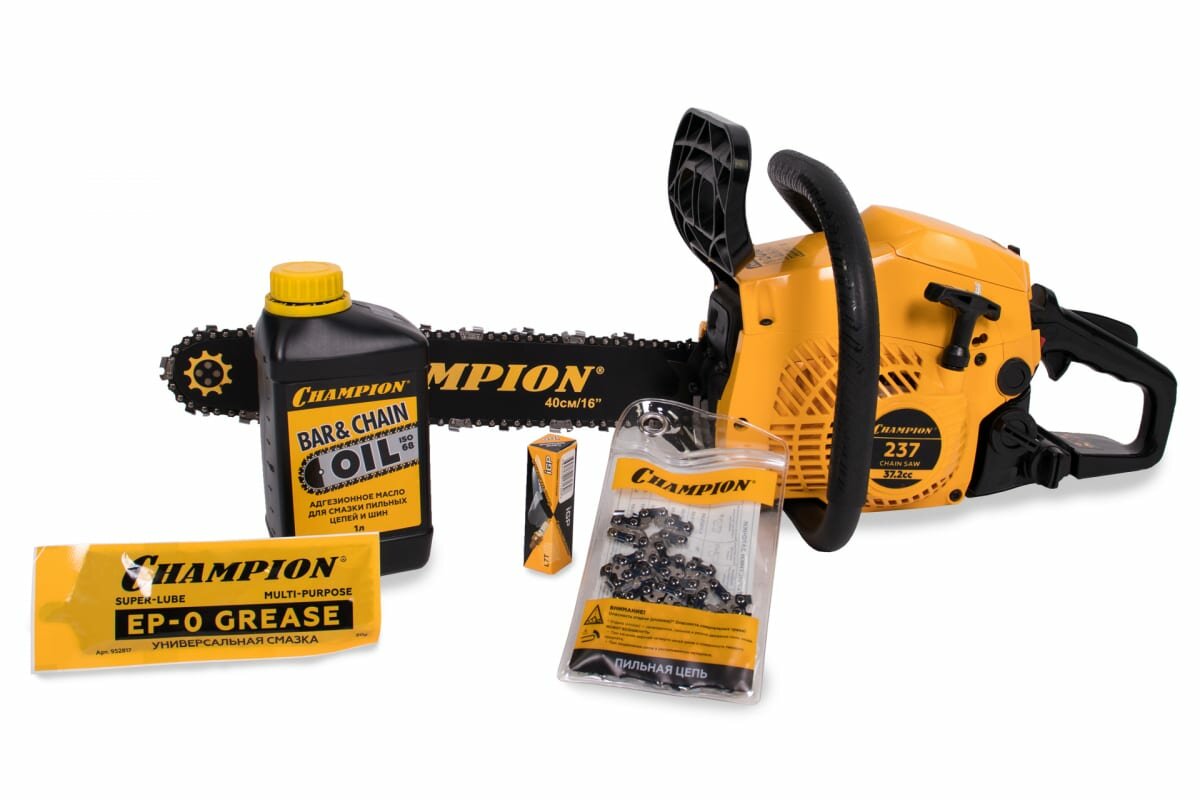 Chainsaw, instruction manual, guide rail, saw chain, spark plug wrench, carburetor adjustment screwdriver