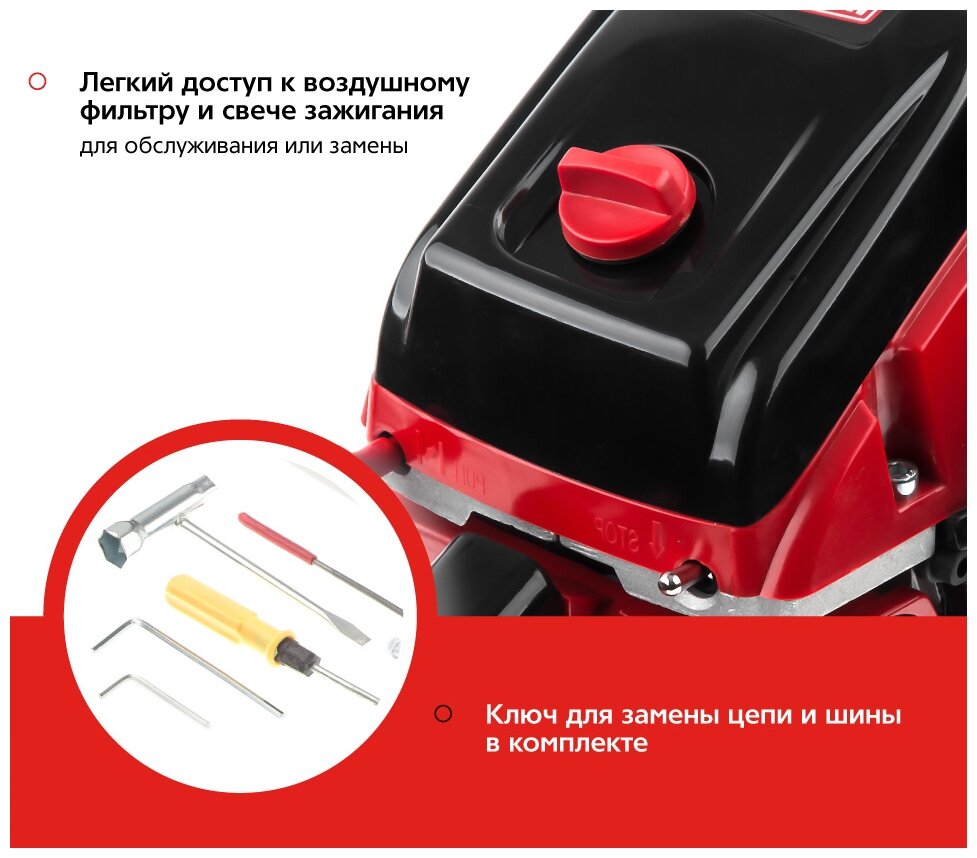 Chain thickness: 1.5mm; number of chain links: 72 pieces; spark plug: NGK BPMR7A/Champion RCJ7Y