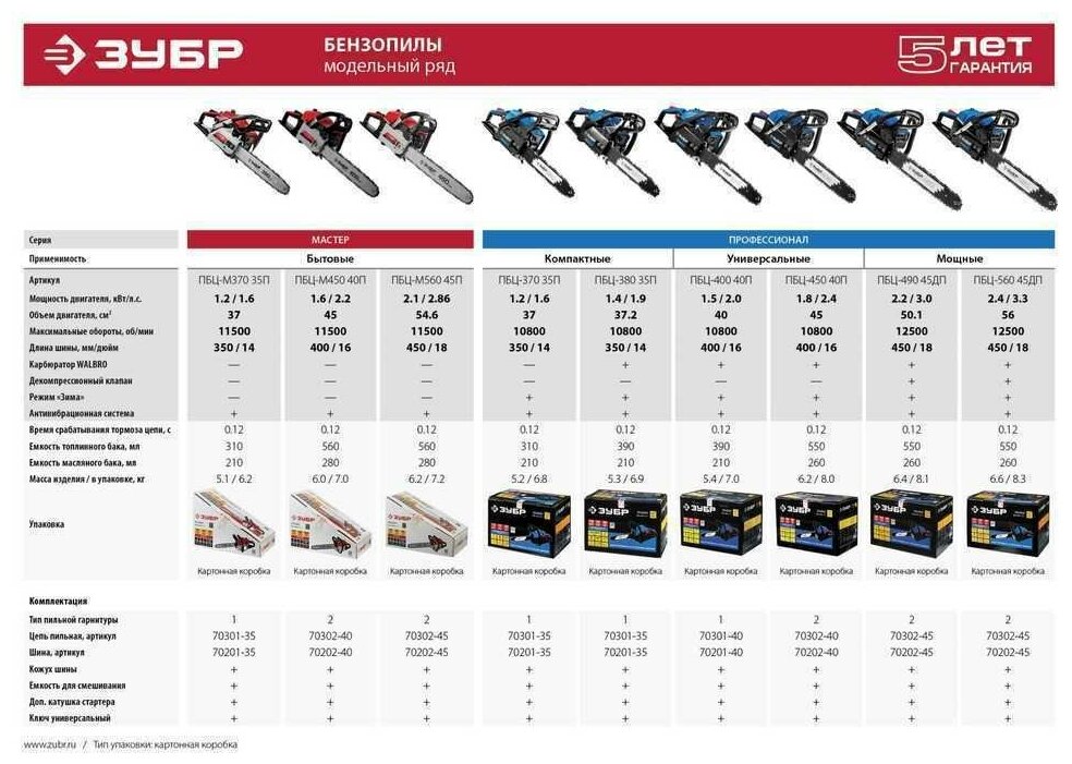 Gasoline saw ZUBR PBTs-380 35p 1400 W/1.9 hp