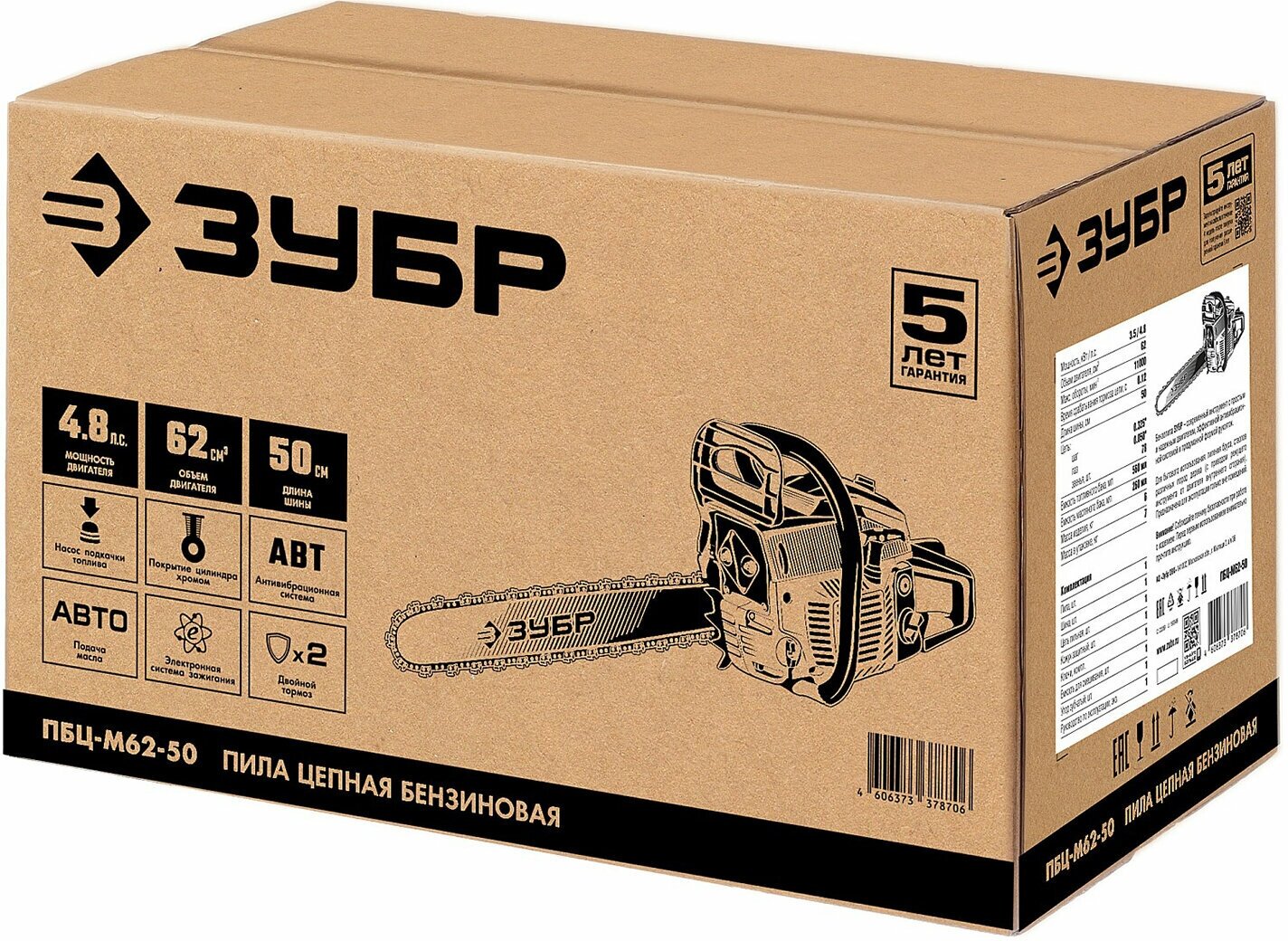 ZUBR PBTs-M62-50 chainsaw, 62 cm3, tire 50 cm