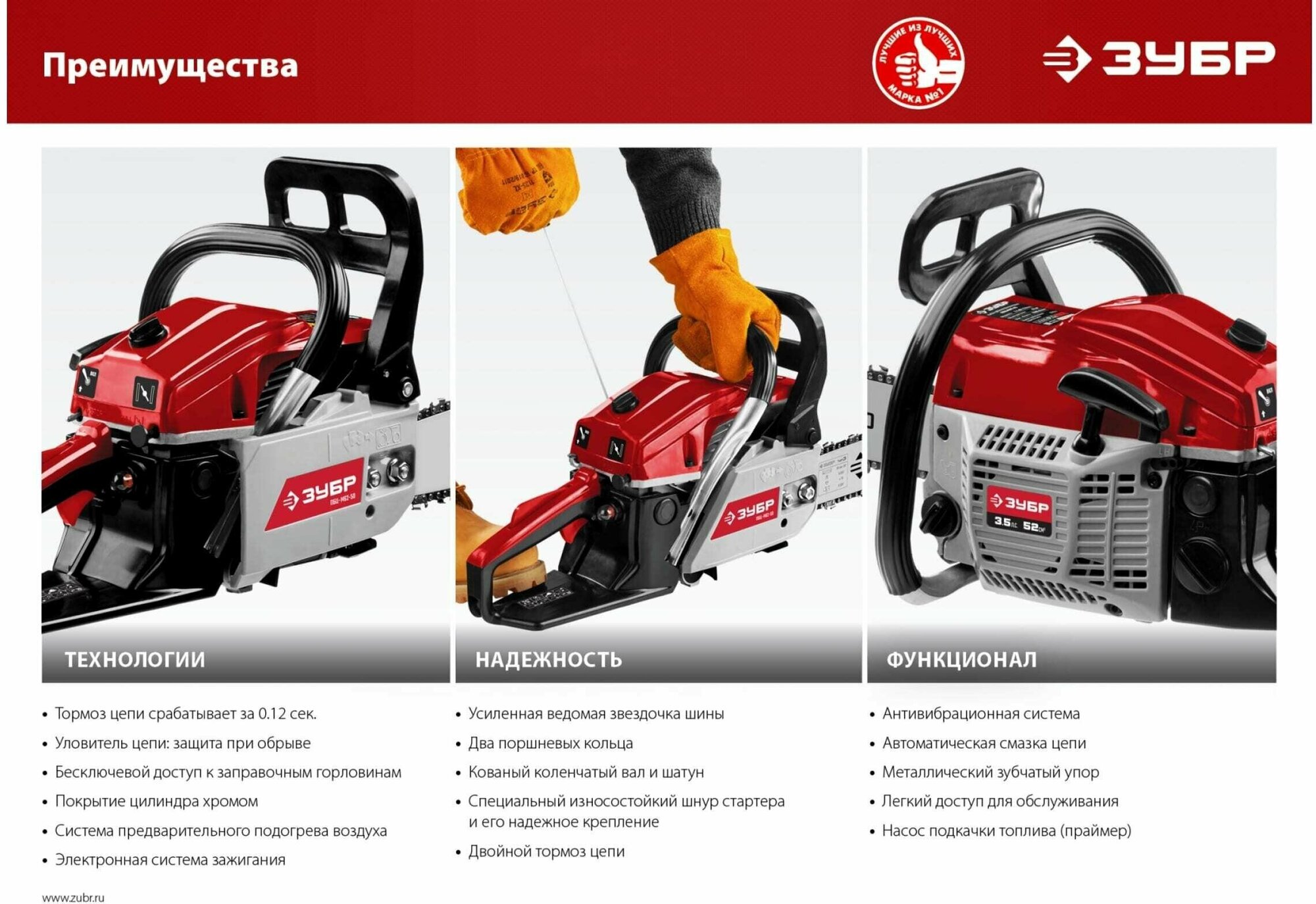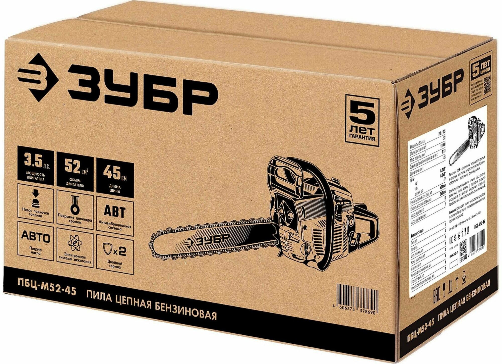 Engine type: gasoline, W: 2600 W, hp: 3.50 hp, tire length: 45.72 cm, chain pitch: 0.325 inch, engine displacement: 52 cm³, anti-vibration, weight: 5.80 kg