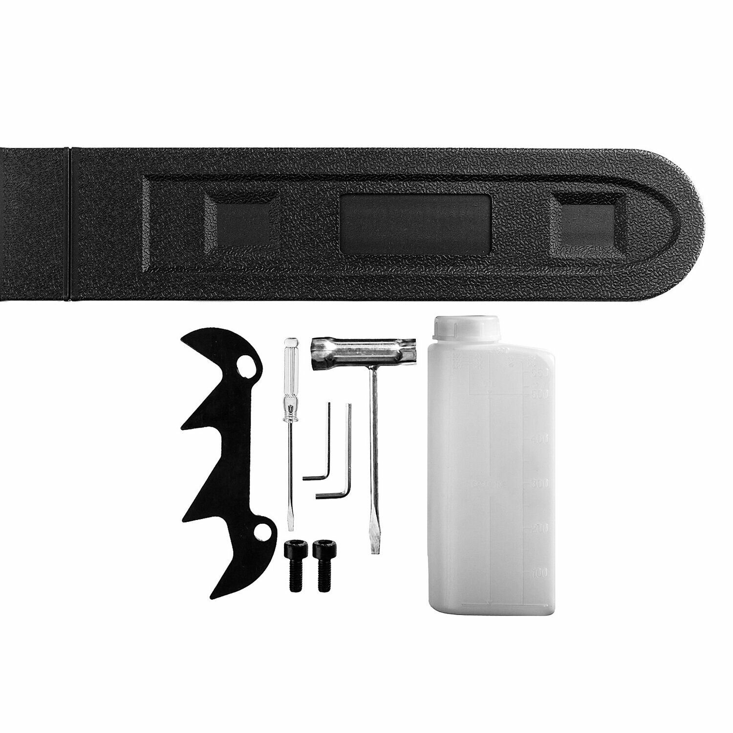 Saw, bar, saw chain, bar guard, allen key, allen key, toothed stop, mixing container, additional starter coil, instruction manual