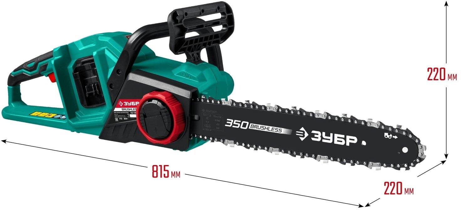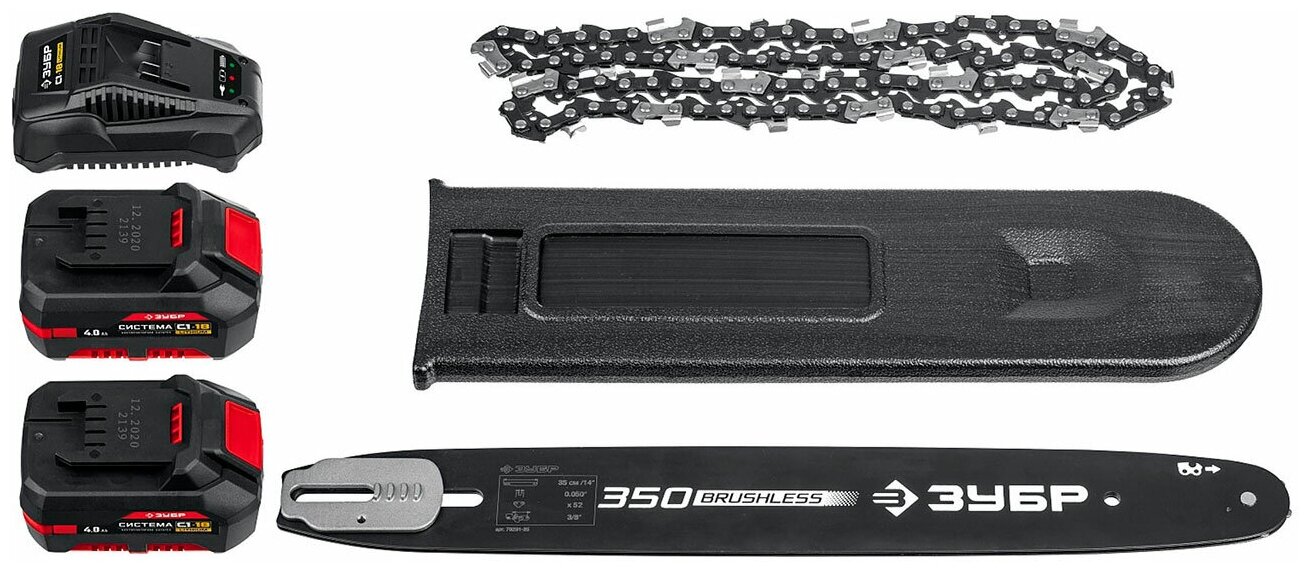 Motor voltage 36 V, powered by two 18 V batteries, number of links: 52, battery charge time: 1.5 h; oil tank volume: 160 ml