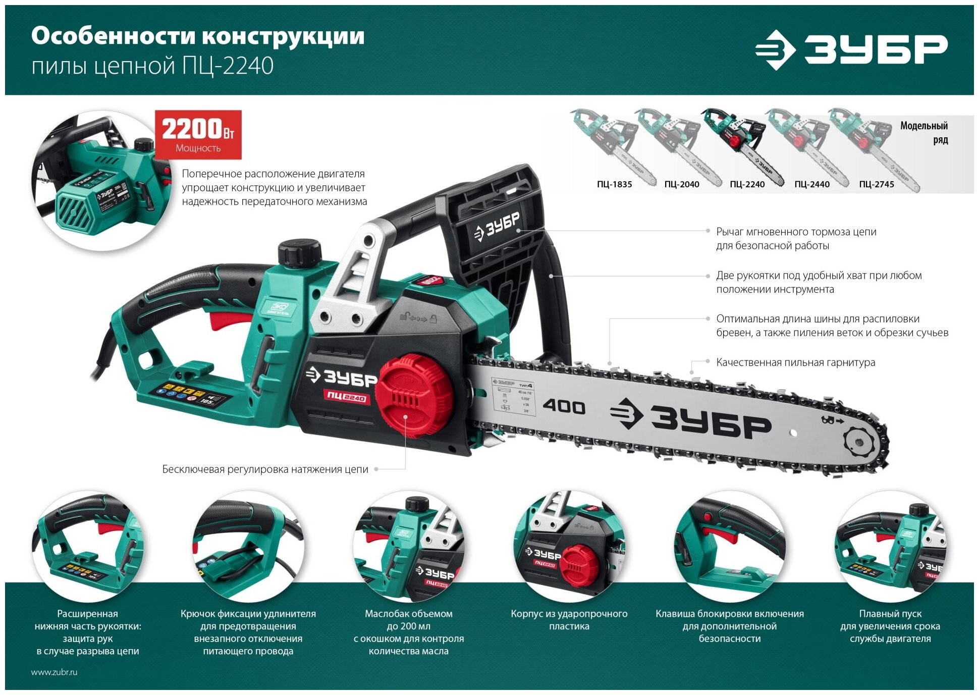 ZUBR 2200 W, 40 cm bar, electric chain saw ПЦ-2240 Master