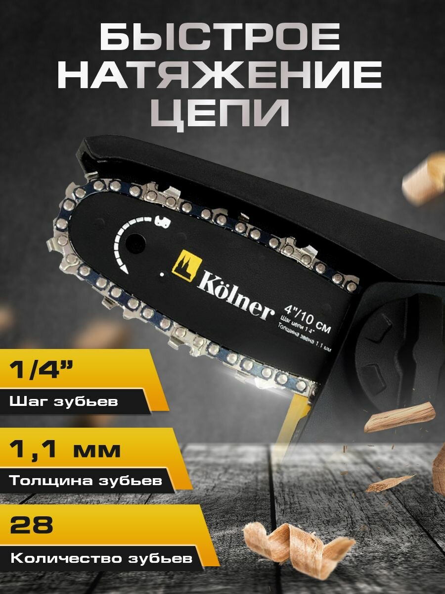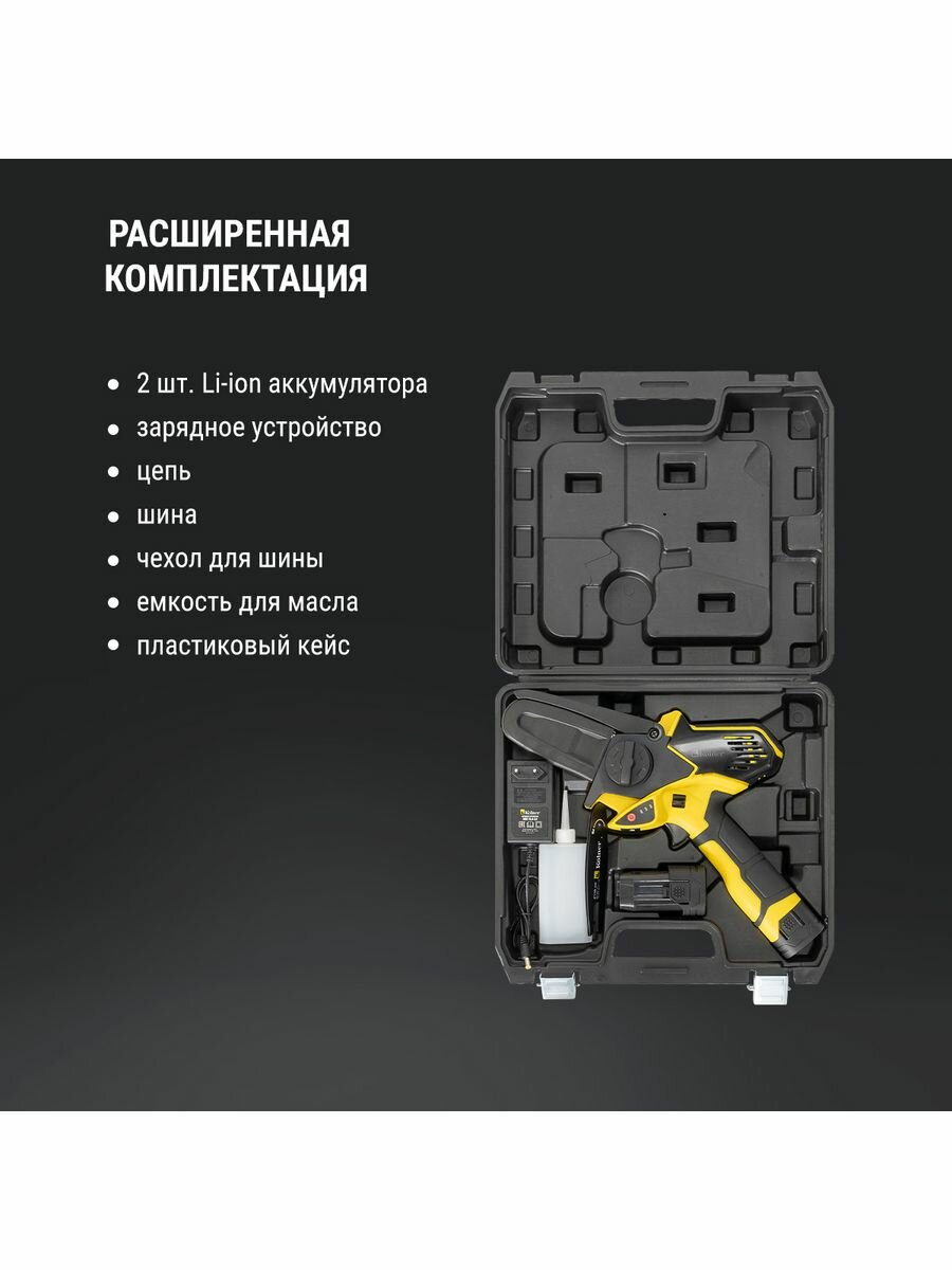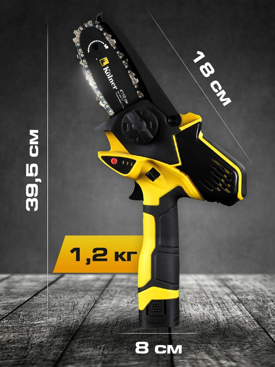Motor type: electric, battery operation, bar length: 10 cm, chain pitch: 1/4", weight: 1.20 kg